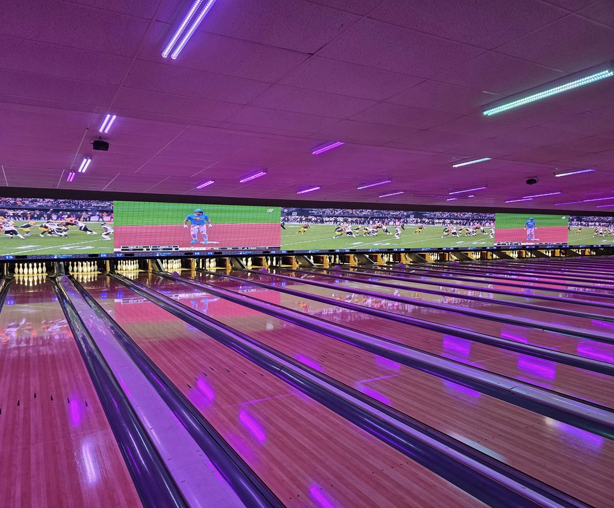 The centerpiece of the upgrade is a high-resolution, 3.9mm pitch direct-view LED masking wall stretching across all 36 lanes. It’s not just a background—it’s the main stage for dynamic visuals, real-time scoring, entertainment content, and even advertising.
